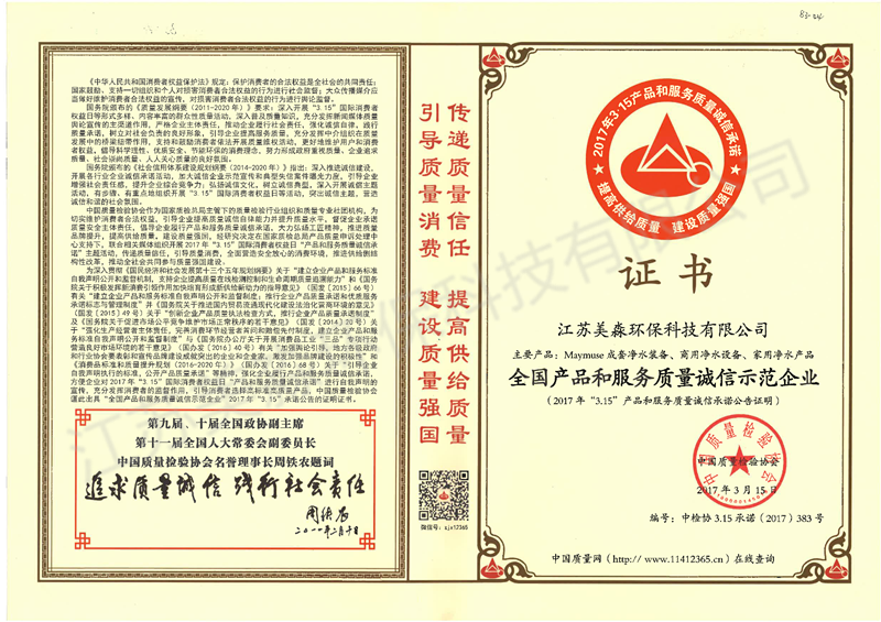 2017年全國(guó)產(chǎn)品和服務(wù)質(zhì)量誠(chéng)信示范企業(yè)-家用商用成套產(chǎn)品