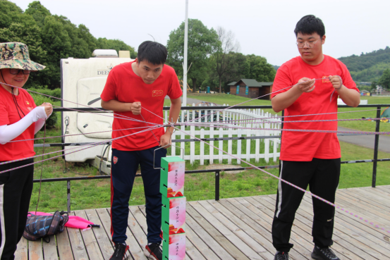 “勝利大會師”環(huán)節(jié),各隊員工每人通過一根細(xì)繩協(xié)力控制掛鉤,按照革命歷史事件先后順序逐個將積木搭建成塔,最終勝利會師。同樣值得一提的是,最后一隊在明知落后的情況下,堅決不放棄,在一次次的失敗后最終取得成功,用行動詮釋了何為“堅持到底就是勝利”。